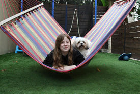 כיום היא מתגוררת עם סבא וסבתא שלה שבחיפה. בחרתי לצלם אותה במרפסת שלהם, על הערסל שהיא אוהבת לשבת ולקרוא ספרים עם הכלב האהוב שלה מיילו.